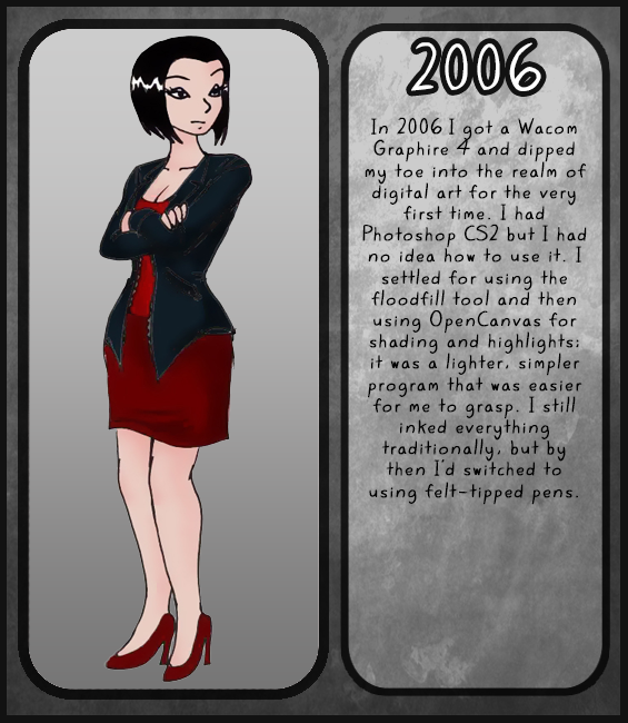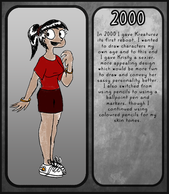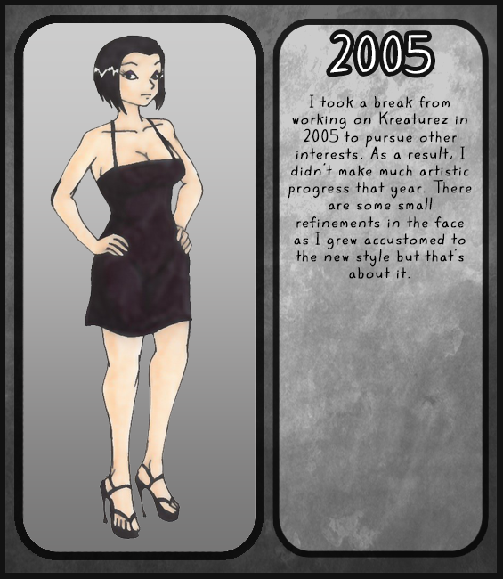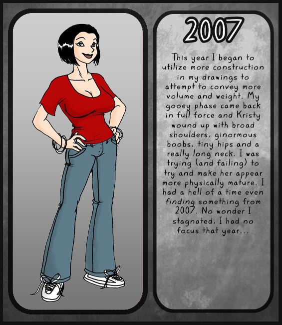 This is an ongoing project charting my artistic progress by year using my character Kristy as a frame of reference.