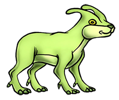This small, common herbivorous Kreature is constantly alert and has quick reflexes because its wild ancestors were prey for many predatory Kreatures. It prefers to live in habitats with tall foliage where it can hide. It can disguise its scent, so when it finds a hiding place it can be very difficult to track down. It is unexpectedly noisy for a Kreature of its size, making loud calls to attract a mate, using the hollow crests on its head as resonating chambers.